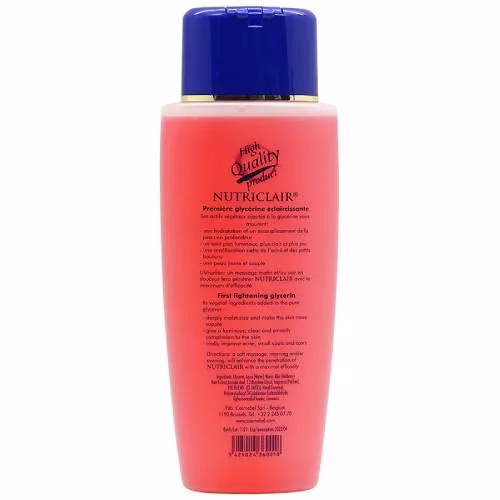 Nutriclair Lightening Glycerin its vegetal ingredients added to the pure glycerin and deeply moisturize and make the skin more supple. Give a luminous clear and smooth complexion to the skin. Really improve acne , small spots and scars.