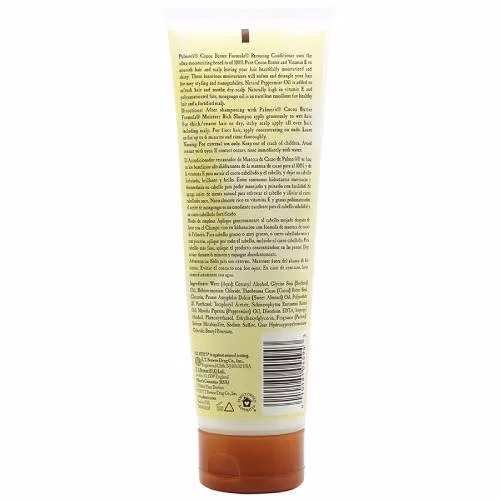 Palmer takes advantage of the ultra-moisturizing benefits of 100% pure cocoa butter and to nourish the hair and scalp, leaving your hair beautifully moisturized and shiny. These luxurious moisturizers will soften and detangle your hair for ease and manageability. Natural peppermint oil is added to refresh hair and soothe dry scalps. A luscious minty chocolate scent is an added benefit for the senses.