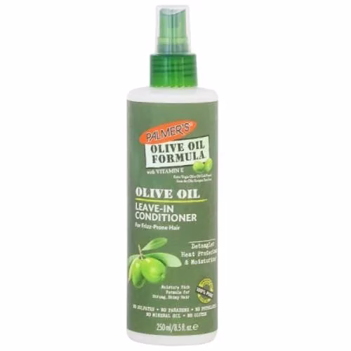 Palmer’s Olive Oil Formula Strengthening Leave-In Conditioner nourishes and repairs dry, frizzy hair. Enriched with an intensive blend Extra Virgin Olive Oil, Vitamin E, Keratin and Silk proteins, this lightweight spray helps control frizz, adds shine, reduces split end, detangles and acts as a heat protectant from styling damage.