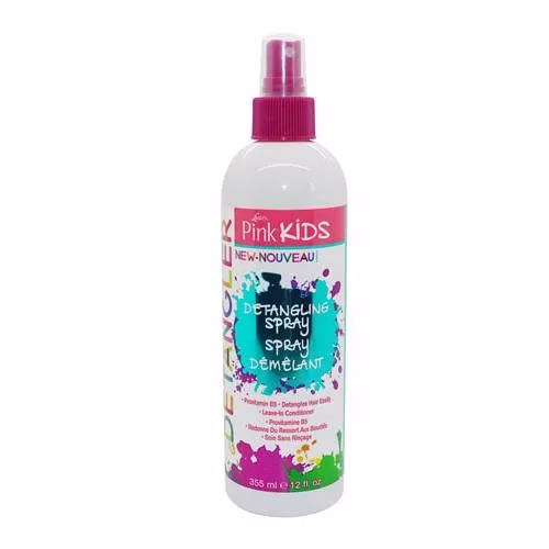 Pink Kids Detangling Spray gently detangles while moisturizing medium and fine curly hair types.