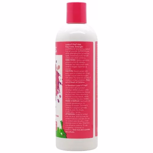 Luster’s Pink Kids Easy Comb Detangler is a MIRACLE detangling product that will provide SUPERIOR ease while detangling the curliest hair types. Excessively curly hair will notice ease while combing.