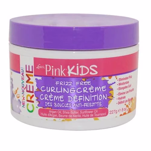 Pink Kids Frizz Free Curling Creme is amazing for curly and wavy hair. Perfect for Wash’N Go styles. Infused with Argan Oil and Shea B utter to define, strengthen & soften hair. For long lasting styles, use with our Pink Kids Detangling Spray for added moisture.
