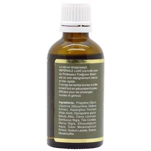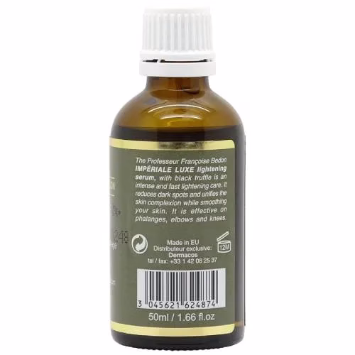 with black truffle is an intensive and quick instant care. This serum eliminates dark spots and unifies the complexion while smoothing your skin. Very effective on the phalanges, elbows and knees. For an additional effect, mix Pr. Francoise Bedon Imperiale Luxe Anti-Age Lightening Serum with Professor Francoise Bedon Imperiale Luxe Body Lotion