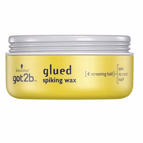Schwarzkopf Got2b Glued Spiking Wax is the first wax f rom got2b with screaming hold for remouldable extreme styles without the crunch. Moulds like a wax, holds like a glue! Simply rub a small amount of wax between your palms, work into dry hair and style as desired. For outrageous spikes twist a small amount into the hair tips.