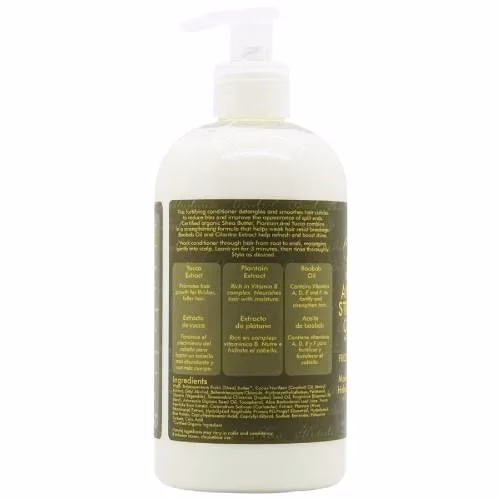Water, Butyrospermum Parkii (Shea) Butter *, Cocos Nucifera (Coconut) Oil, Stearyl Alcohol, Cetyl Alcohol, Behentrimonium Chloride, Hydroxyethylcellulose, Panthenol, Glycerin (Vegetable), Simmondsia Chinensis (Jojoba) Seed Oil, Fragrance (Essential Oil Blend), Adansonia Digitata Seed Oil, Tocopherol, Aloe Barbadensis Leaf Juice, Yucca Brevifolia Root Extract, Coriandrum Sativum (Coriander) Extract, Plantain (Musa Paradisiaca) Extract, Hydrolyzed Vegetable Protein PG-Propyl Silanetriol, Hydrolyzed Rice Protein, Caprylodium Glycol, Caprylyl Benzoate, Potassium Sorbate, Citric Acid