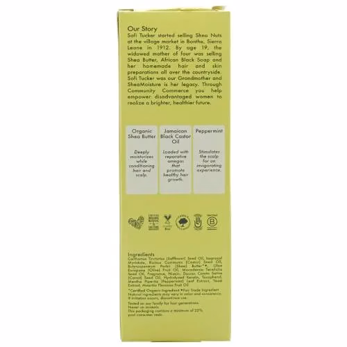 which is rich in essential omega acids that penetrate deep into the scalp to nourish hair and promote hair growth. Shea butter from controlled organic cultivation mixed into this formulation provides brittle, over-processed curls with nourishing moisture. Natural ingredients like peppermint invigorate the scalp and strengthen your hair from the roots.