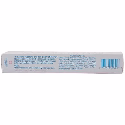 High concentration of lightening active ingredients with immediate effect, permanently bound in a gentle moisturizing cream. This product was developed through advanced research to reduce brown spots and gradually lighten the complexion. Thanks to its special composition, this whitening cream works efficiently and permanently without irritating the skin. It stimulates the formation of new epidermal cells free of brown spots. The cream also has antibacterial and sebum-regulating properties.