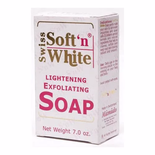 Swiss Soft’n White Lightening Exfoliating Soap gently rubs your skin to eliminate impurities and dead cells. It contains apricot kernels and natural ingredients that help to cleanses, softens and keep your skin looking radiant and smooth .