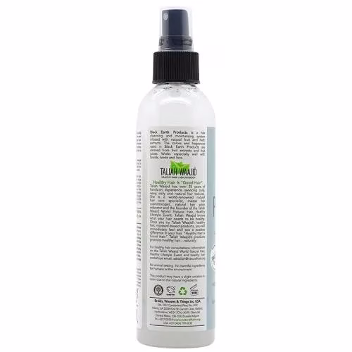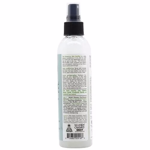 Taliah Waajid Black Earth Products Protective Mist Bodifier. For combing out and detangling – After shampooing and care, dry the hair with a towel and cut off with your fingers. Separate the hair into about 8 sections. Each braid or twist section. When you’re done, start at the nape of the neck area and undo a section and spray the Protective Mist Bodifier on the hair. Distribute evenly and into the a. work in right You should be able to swipe your fingers through this section after applying the bodifier. You will feel the product cover your hair. At this point you can comb the section out. Once you are done with one section, move on to another over il you have completed the entire head. Use more product and work longer on severely tangled hair. Daily Conditioning – Spray the Protective Mist Bodifier on the hair and scalp of braids, curls, twists and natural hairstyles. Use at least 3 times a week.