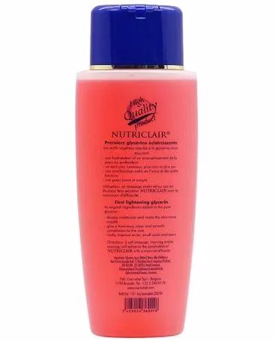 Nutriclair Lightening Glycerin its vegetal ingredients added to the pure glycerin and deeply moisturize and make the skin more supple. Give a luminous clear and smooth complexion to the skin. Really improve acne , small spots and scars.
